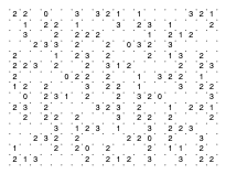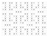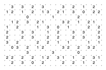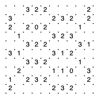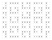 注) 「スリザーリンク」はニコリの登録商標です。 ニコリでは、読者の投稿によりパズル誌を発行していますが、パズルの投稿に際しては、制作上に ある程度の規定を設けているようです。 「スリザーリンク」では、制作上の暗黙の投稿規定として、以下の2項目があるようです。 1.数字の配置は点対称になっていること。 2.「0」は縦・横・斜めに隣り合ってはいけない。 というものです。 暗黙の規定と言う事で、どこまで厳格に適用されているのか分りませんが、そういえば 雑誌等に出ている問題で、ここから外れているものは見たことがありません。 作成問題の変更 1) そんなわけで、私の作成する問題もその規定に合わせてきたのですが、考えてみると 私は、ニコリに投稿するつもりはないので、必ずしもその規定に合わせる必要はないのです。 そこで、問題が100を超えた所で、点対称でない問題も作っていこうと思います。 作成問題の変更 2) 問題が200を超えたので、別の方式の問題を考えました。 四角の形を変えることを考えてみましたが、これは色々と問題がありそうです。(解答用ソフトとか) そこで、「0」を使って形を変えてみることにします。0で囲ってそこに入れないようにすることで 擬似的に変形させようということです。どんな感触になるか、とりあえず遊んでみてください。 作成問題の変更 3) 問題が300を超えたので、以前より考えていた「0」壁問題を作ってみることにします。 「0」囲み問題と組み合わせると、いろいろな事ができそうです。 解答ページの追加 問題の解答ページを追加しました。 過去問リンクのページの右端の「解」の文字から各過去問問題集の解答ページにリンクしています。 但し、このページの問題の解答は載せません。過去問に移動したときに追加することにします。 |